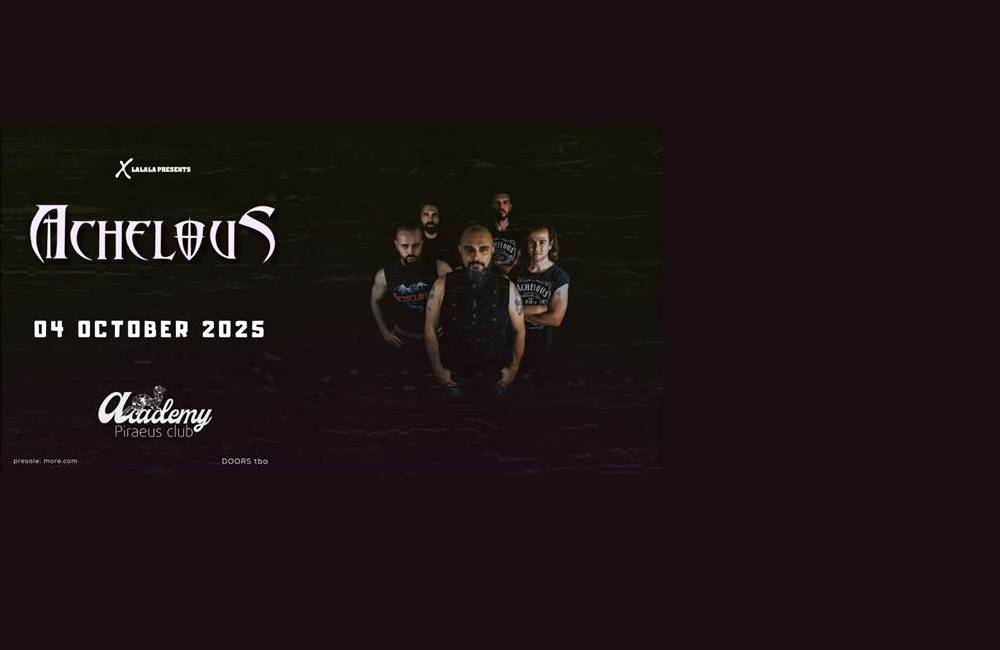 Το Σάββατο 4 Οκτωβρίου, οι Achelous κατεβαίνουν στο Piraeus Club Academy και όσοι ξέρουν… ξέρουν. Μία απ’ τις πιο αγαπημένες μπάντες της ελληνικής underground metal σκηνής επιστρέφει στην Αθήνα για ένα live που δεν χάνεται.