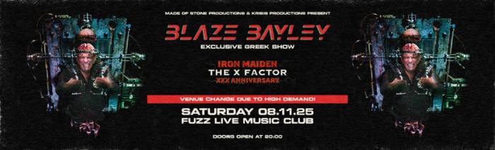 Τρεις δεκαετίες μετά, ο Blaze Bayley διατηρεί την αυθεντικότητα, τη φωνή και την παρουσία του αλώβητες. Με μία αξιοθαύμαστη solo πορεία και έντεκα προσωπικά albums -με πιο πρόσφατο το εξαιρετικό Circle of Stone του 2024- ο Blaze έχει κερδίσει τη θέση του στην καρδιά των metal οπαδών, ιδιαίτερα στην Ελλάδα, όπου το κοινό τον στηρίζει φανατικά και θερμά σε κάθε του εμφάνιση από το 2017 και μετά.