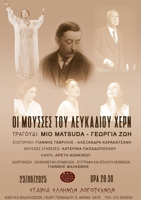 ΛΕΥΚΑΔΙΟΣ ΧΕΡΝ (Leykadios Hern) στα λόγια σας ζω.Ένα ποιητικό ταξίδι στην ζωή και το έργο του με τα τραγούδια της μούσας Mio Matsuda από την Ιαπωνία, που γεφυρώνονται με τα Ελληνικά με την φωνή της Γεωργίας Ζώη και την εξιστόρηση του Γιάννη Γαβρίλη στον ρόλο του Λευκάδιου Χερν και της Αλεξάνδρας Καρακατσάνη.