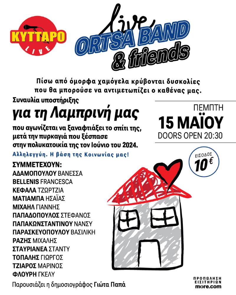 Την Πέμπτη 15 Μαΐου 2025 η ORTSA BAND υποδέχεται τους φίλους της στο ΚKyttaro και ενώνουν τις φωνές τους για ένα σημαντικό σκοπό.