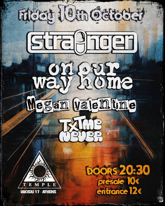STRAiNGER / On our Way Home / Megan Valentine / Text me Never / Friday 10/10 live @ Black Temple Athens