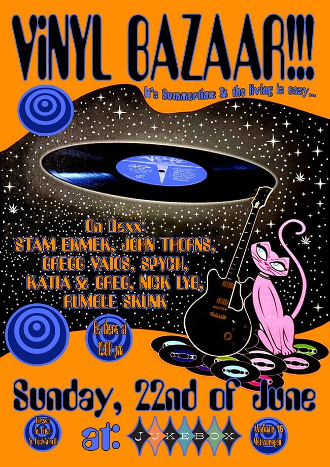 Μια συνάντηση για vinyl lovers , όπου η διασκέδαση είναι το κλειδί!!! Αυτή είναι η 2η συνάντηση του Jukebox που βασίζεται αποκλειστικά σε μουσικά είδη και ο στόχος είναι να καθιερωθεί ως μία από τις τακτικές μουσικές συναντήσεις της πόλης.