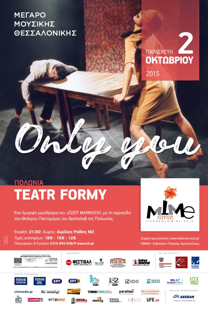 Του πρώτο Διεθνούς Mime Φεστιβάλ ξεκιναει με μια εξαιρετική παράσταση παντομιμας με τιτλο ONLY YOU από το Teatr Formy του Βροτσλαβ της Πολωνίας.