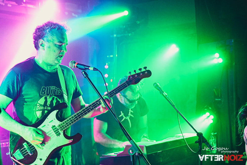 Ο Μανώλης Χατζηδάκης από την άλλη, αν και κρυβόταν στα εν μέρη λιγοστά φώτα που υπήρχαν, έκανε την εμφάνισή του με τον τρόπο του. Θα μου πεις πόσο να στριμωχτούν επάνω στη σκηνή; Με τον Αλέξανδρο Κλημεντόπουλο πίσω στα σκοτάδια (δικό μας παιδί) και τα τύμπανά του που έδιναν όχι απλά τον ρυθμό, αλλά και μια ώθηση παραπάνω, καταλάμβανε τη μια άκρη, συναντώντας τον Dr. Organ στην τέμνουσα άκρη. Βλέπετε κάποιοι είναι οι “αφανείς ήρωες” που κρατάνε ισορροπίες και γρεζιού.