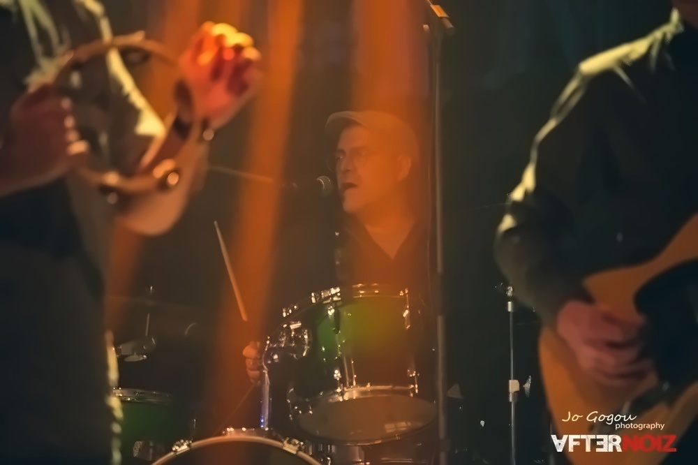 Ο Γιάννης Φερφιρής στα τύμπανα, κατάφερνε να συγχρονίζει τον ρυθμό για όλους και να δίνει το δικό του στίγμα, κρυμμένος πίσω από τα πιατίνια.