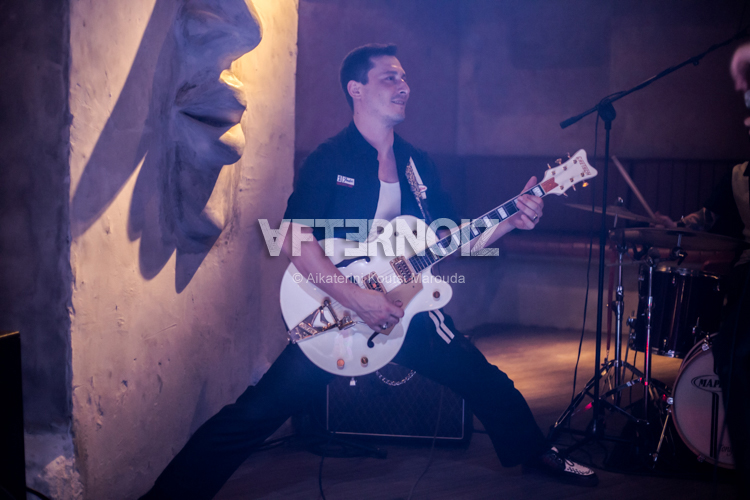 A while after 11:00pm and Vanila Swing eagerly come on stage and warm up with the audience. As an introduction they play vigorously versions of Madrid and Heard it through the grapevine by Marvin Gaye. The striking appearance of songstress Lidia Aggelaki comes in total agreement with the pin-up aesthetics, and left nobody unimpressed.
