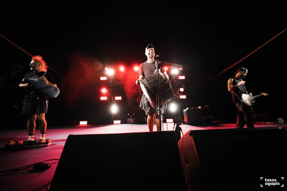 Το ρολόι έδειχνε 22:05 όταν οι ΘΡΑΞ ΠΑΝΚC πήραν τη σκηνή και την έκαναν δική τους με το πρώτο κιόλας δευτερόλεπτο. Το intro ήταν δυναμικό, σαν κάλεσμα σε πανηγύρι και εξέγερση μαζί, και το «Αγιά Μαρίνη» άνοιξε το setlist με ηλεκτρισμό. Η συνέχεια έφερε τραγούδια όπως τα «Βασιλικούδα», «Δέντρο (Δεντρίτσι)» το οποίο ο κιθαρίστας Πάνος Γκίνης αφιέρωσε στους γονείς του, τιμώντας την 47η επέτειο γάμου τους, που συνέπιπτε με τη βραδιά, μια συγκινητική και αληθινή στιγμή που κέρδισε το χειροκρότημα σκορπώντας χαμόγελα!