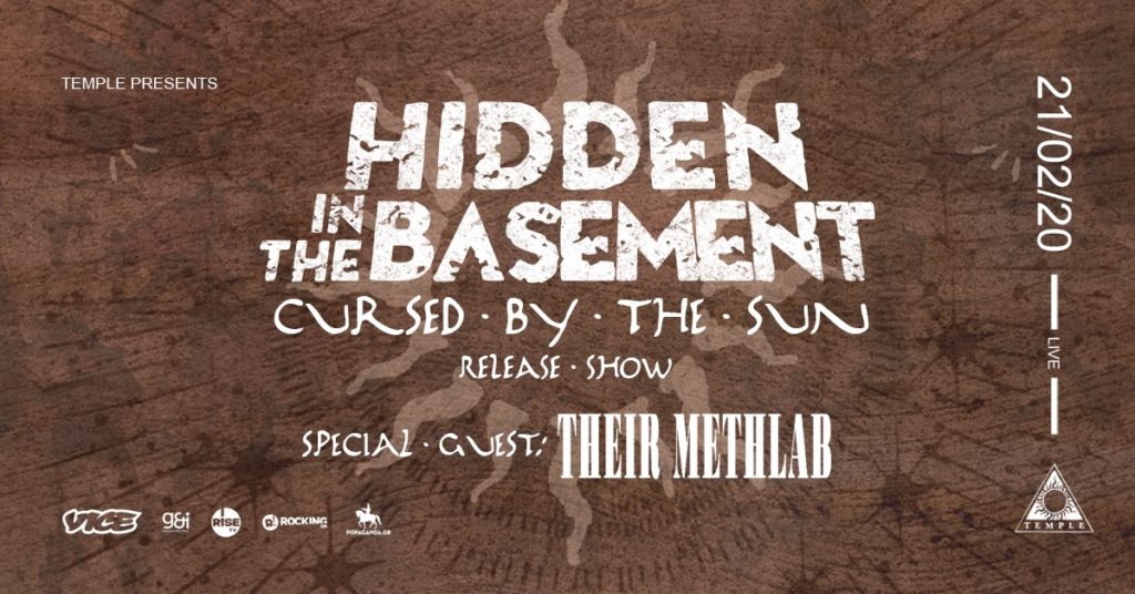 Έχοντας στις αποσκευές τους το νέο τους album με τίτλο “Cursed By The Sun”, και κουβαλώντας στις πλάτες τους μια πολυετή εμπειρία από συναυλίες σε Ελλάδα και Ευρώπη, όπως και συμμετοχές σε σημαντικά εγχώρια φεστιβάλς του είδους, οι Λαρισαίοι Hidden in the Basement ξεχύνονται και πάλι στον δρόμο, για να παρουσιάσουν το νέο τους δισκογραφικό δημιούργημα στο όλον του και να μας δώσουν μια γεύση από το γκρουβάτο, προοδευτικό τους metal, που με σαφείς αναφορές στο παρελθόν του ήχου, ηχεί και τώρα φρέσκο και επίκαιρο, και –όπως πάντα- ενδυναμωμένο από τα δεξιοτεχνικά παιξίματα του κουαρτέτο.