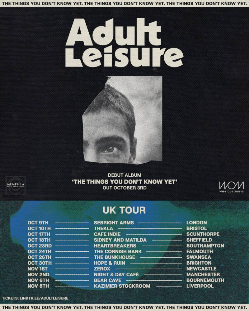 A 12 date headline album tour has been announced, commencing at London’s Sebright Arms and ending at Liverpool’s Kazimier Stockroom including renowned venues such as Manchester’s Night & Day Cafe, and Bristol’s Thekla, their biggest hometown headline to date, tickets are on sale now and available at https://linktr.ee/adultleisure.