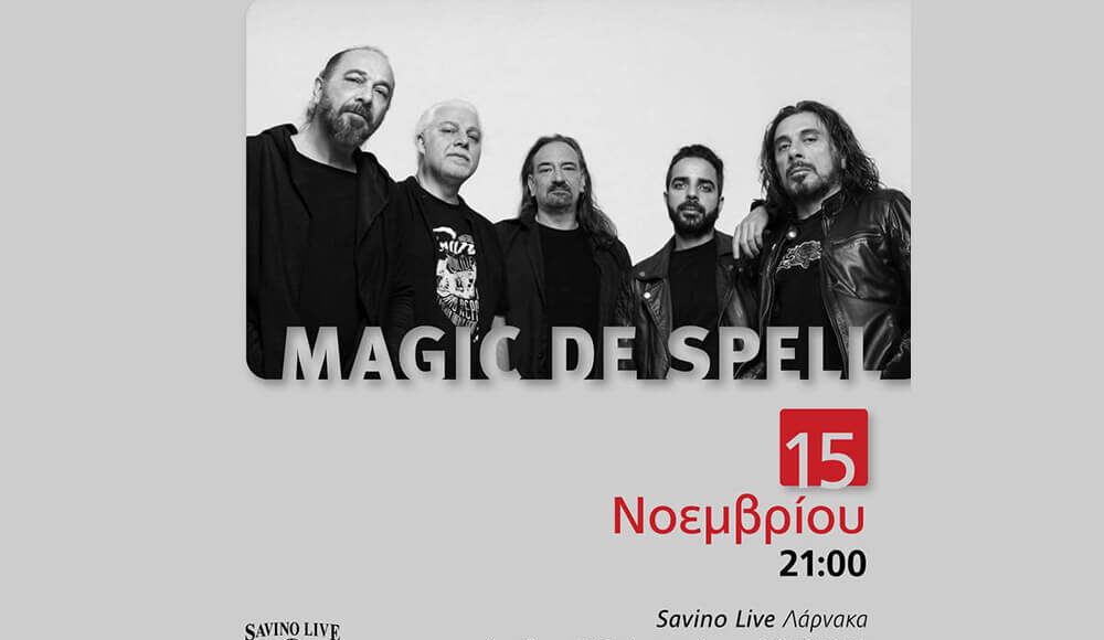 Σε συνέχεια των σπουδαίων εμφανίσεων που φιλοξενεί το Savino live στην Κύπρο και στη Λάρνακα, σειρά έχουν να εμφανιστούν οι σπουδαίοι Magic De Spell αυτή την Τετάρτη, 15 Νοεμβρίου στα πλαίσια των Πολιτιστικών εκδηλώσεων για τον εορτασμό των 75 ετών από τη δημιουργία της Νέας Σαλαμίς Αμμόχωστος A.C.