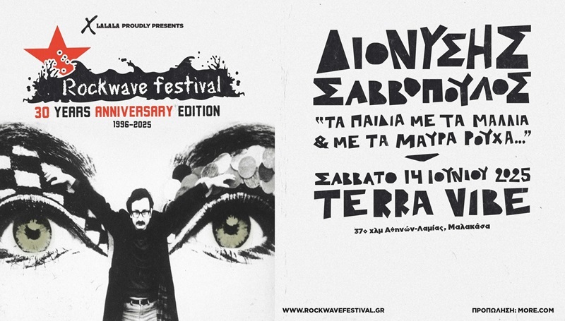 Στις 14 Ιουνίου στη σκηνή του TERRA VIBE του Rockwave Festival θα έχουμε την ευκαιρία να απολαύσουμε τον Διονύση Σαββόπουλο (Dionysis Savvopoulos) σε ένα μοναδικό live με εκλεκτό καλεσμένο τον Αλκίνοο Ιωαννίδη. Περισσότερες πληροφορίες σχετικά με την εκδήλωση μπορείτε να βρείτε στην agenda μας.