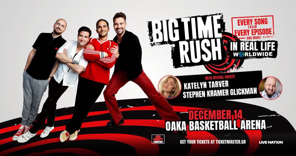 ετοιμάζονται για μια εντυπωσιακή χρονιά το 2025, με την ανακοίνωση της ολοκαίνουριας περιοδείας τους, BIG TIME RUSH IN REAL LIFE WORLDWIDE. Στο πλαίσιο αυτής οι Big Time Rush θα έρθουν για πρώτη φορά στην Ελλάδα για να εμφανιστούν στο Κλειστό Γήπεδο Μπάσκετ ΟΑΚΑ την Κυριακή 14 Δεκεμβρίου 2025.