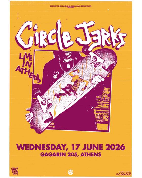 Οι θρυλικοί Circle Jerks, ένα από τα πιο εμβληματικά και επιδραστικά συγκροτήματα της αμερικανικής hardcore punk σκηνής, έρχονται για πρώτη φορά στην Ελλάδα, την Τετάρτη 17 Ιουνίου 2026 στο Gagarin 205, για μία και μοναδική εμφάνιση που αναμένεται να μείνει στην ιστορία!