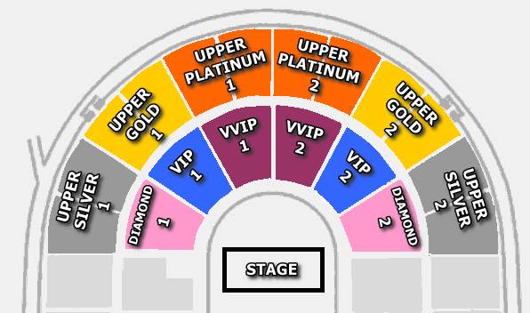 στα εισιτήρια του κάτω διαζώματος (VVIP, VIP, DIAMOND) οι θέσεις είναι πλήρως αριθμημένες (κερκίδα, σειρά και αριθμός θέσης) στα εισιτήρια του άνω διαζώματος (PLATINUM, GOLD, SILVER) ισχύει αρίθμηση κερκίδας (εντός της κερκίδας οι θέσεις είναι χωρίς αρίθμηση).