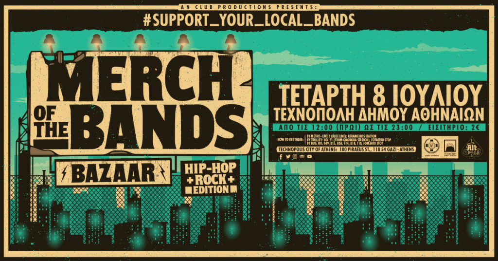 Λόγω της νέας πραγματικότητας, στην οποία καλούμαστε όλοι μας να προσαρμοστούμε και να φερθούμε με υπευθυνότητα και έχοντας ως πρώτιστη μέριμνα την ασφάλεια των επισκεπτών του MERCH of the Bands Bazaar (Hip-Hop & Rock Edition) | Τεχνόπολη!, σας ενημερώνουμε πως ο αριθμός του κοινού στον χώρο της κεντρικής πλατείας της Τεχνόπολης θα είναι κάθε στιγμή συγκεκριμένος και περιορισμένος.