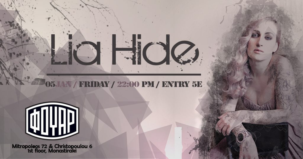Στην Ελλάδα έχει εμφανιστεί μεταξύ άλλων με τους KBHTA, Tricky, Kovacs, Anneke, Joseph Van Wissem, Molly Nilson, Active Member αλλά και με τους Keep Shelly in Athens, Sleepin Pillow και Universe217. Με πολύ εμφανή τον ερωτά της με τον ήχο των 90’ς, η Lia Hide παίζει ποπ που θυμίζει από Tori Amos μέχρι Muse, Pj Harvey και Portishead, γράφει πυρετωδώς και περιοδεύει συνέχεια, θεωρώντας χρέος του καλλιτέχνη να αντιδρά στην καθημερινότητα μας.
