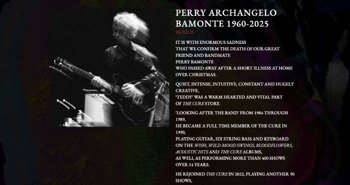 «Με μεγάλη λύπη επιβεβαιώνουμε τον θάνατο του μεγάλου μας φίλου και μέλους της μπάντας Perry Bamonte, ο οποίος απεβίωσε μετά από σύντομη ασθένεια στο σπίτι του κατά τη διάρκεια των Χριστουγέννων». «Ήσυχος, έντονος, διαισθητικός, σταθερός και εξαιρετικά δημιουργικός, ο «Teddy» ήταν ένα θερμό και ζωτικό μέρος της ιστορίας των The Cure».