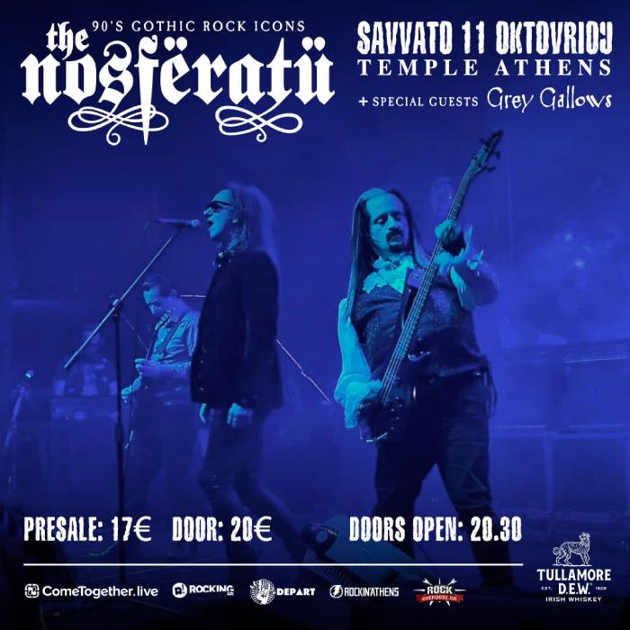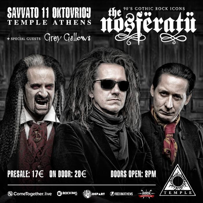 Το Temple σε συνεργασία με την Orlock Promotions παρουσιάζουν: The Nosferatu (UK) + Grey Gallows Live in Athens + DJs George P / Malice F. Συντονιστείτε το Σάββατο 11 Οκτωβρίου 2025 στο Temple.